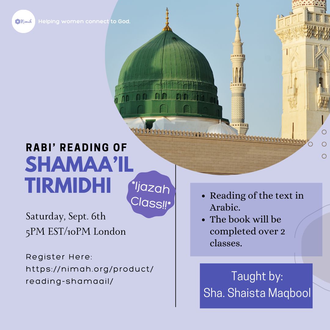 Attendees will be granted ijazah/isnaad to the author, Imam Tirmidhi. I have read the book 8 times with numerous Shuyukh, Alhamdulillah.